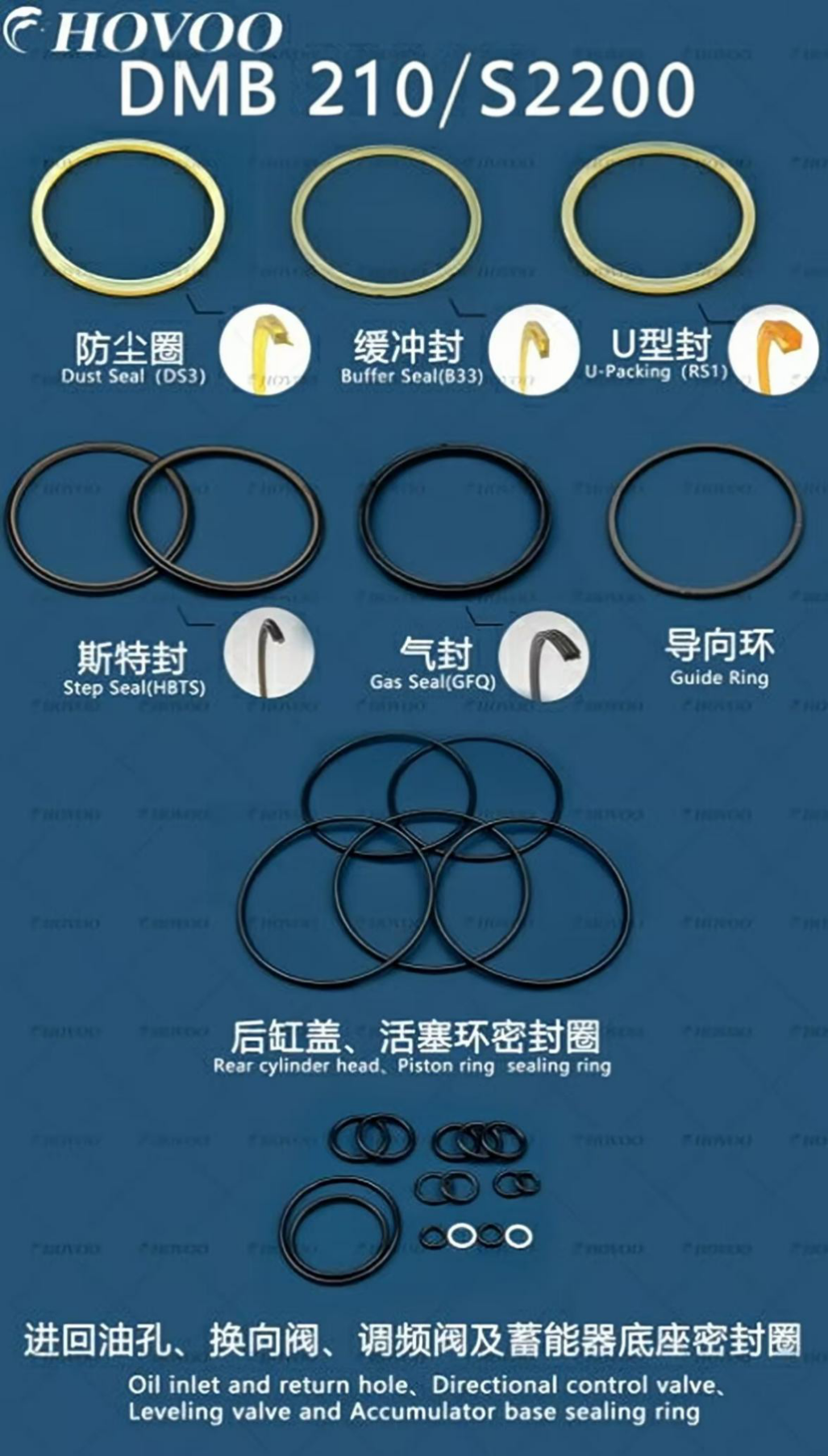 DMB 210/S2200 Uzgriežņu atslēgas hermetizācijas komplekta komponenti