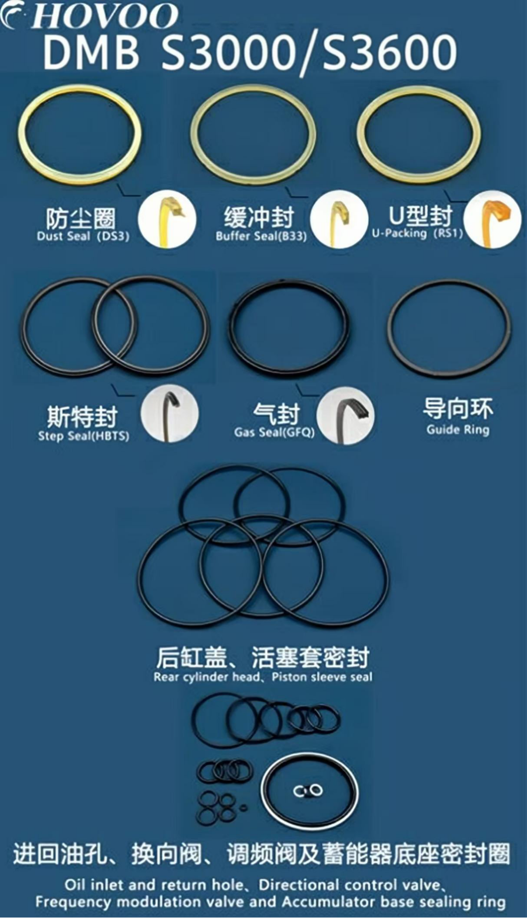 DMB S3000/S3600 Uzgriežņu atslēgas hermetizācijas komplekta komponenti