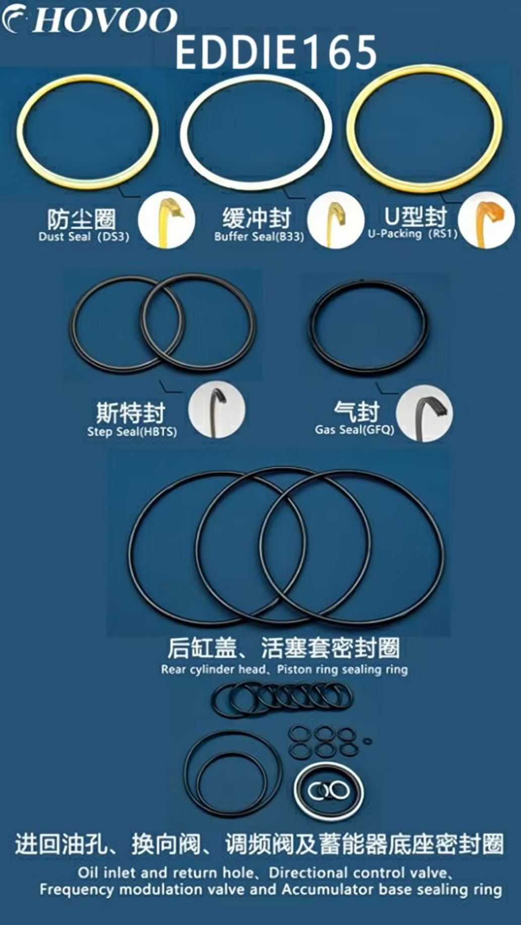 EDDIE165 Uzgriežņu atslēgas hermetizācijas komplekta komponenti