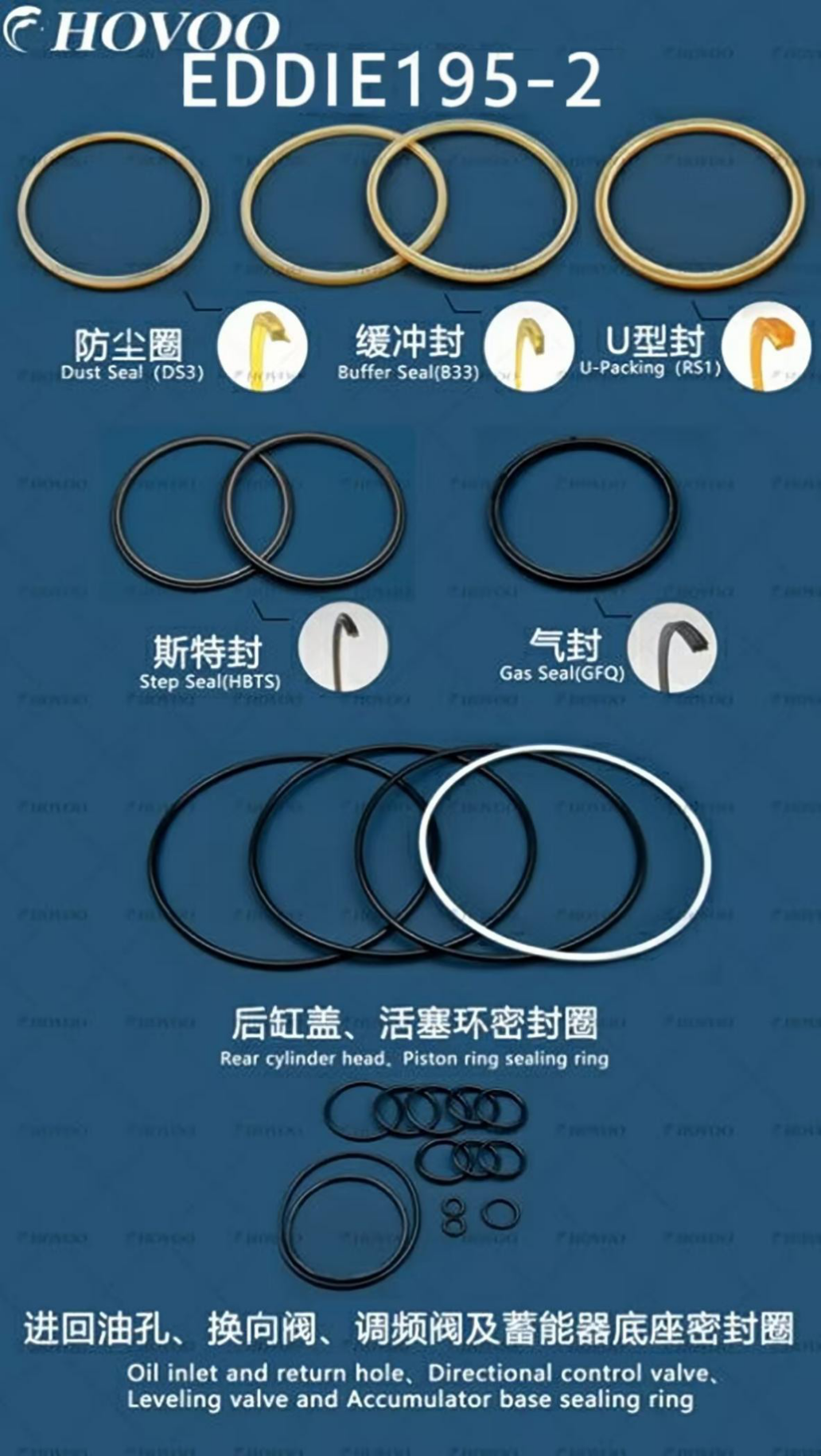 EDDIE195-2 Uzgriežņu atslēgas hermetizācijas komplekta komponenti