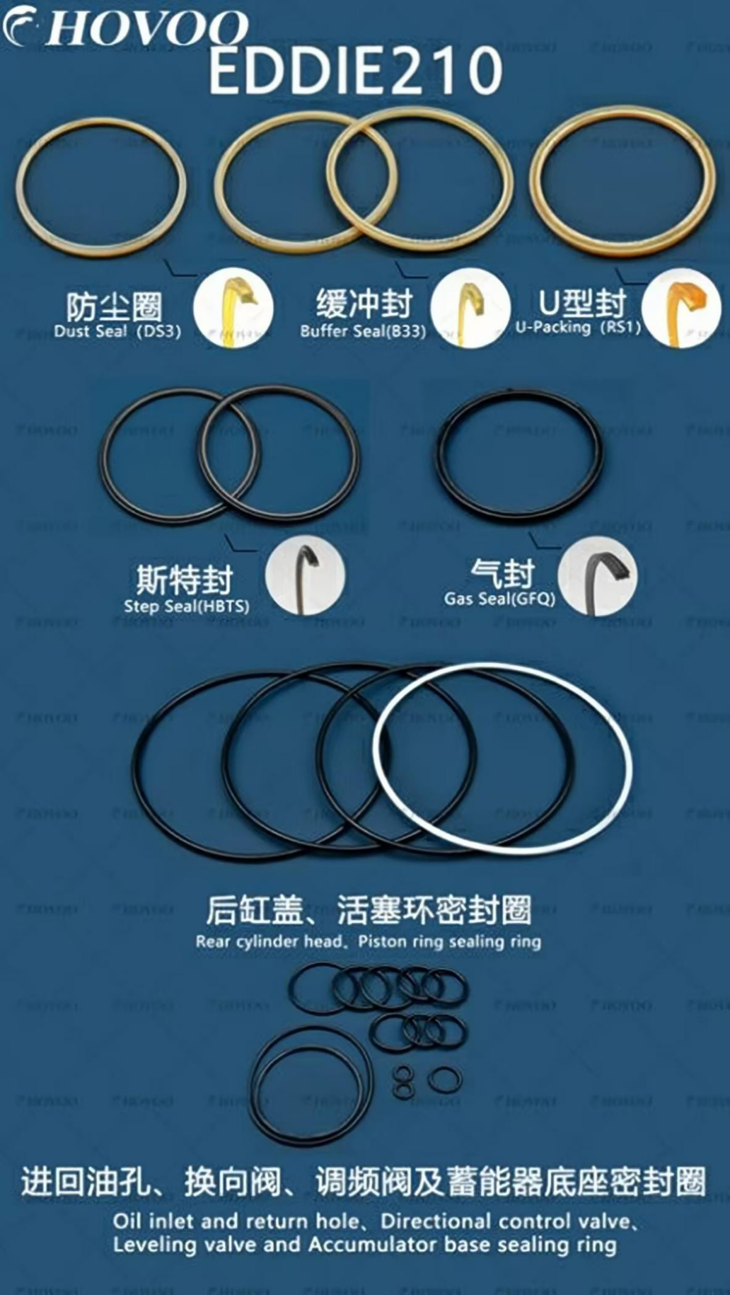 EDDIE210 Uzgriežņu atslēgas hermetizācijas komplekta komponenti