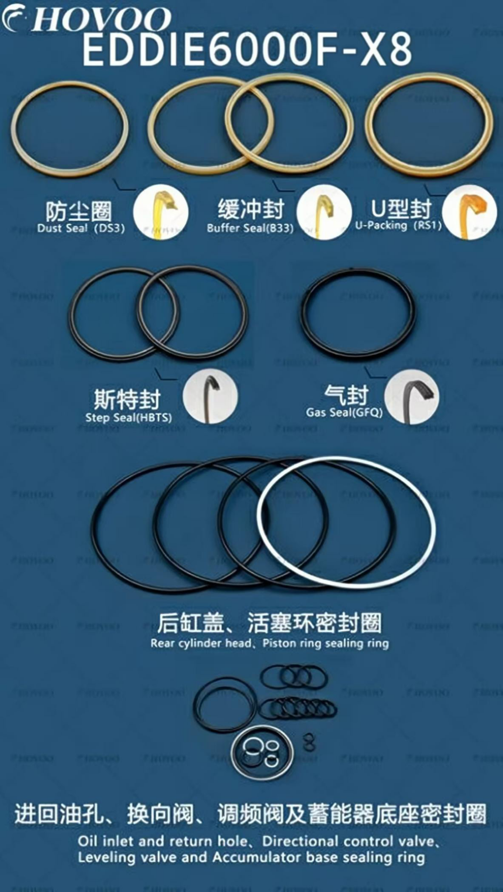 EDDIE6000F-X8 Uzgriežņu atslēgas hermetizācijas komplekta komponenti