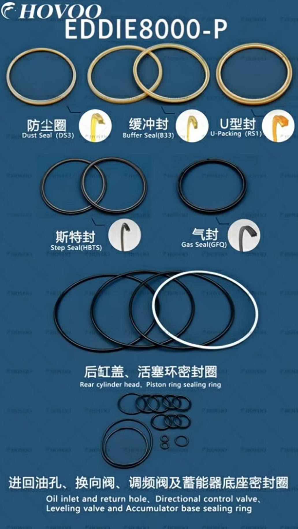 EDDIE8000-P Uzgriežņu atslēgas hermetizācijas komplekta komponenti