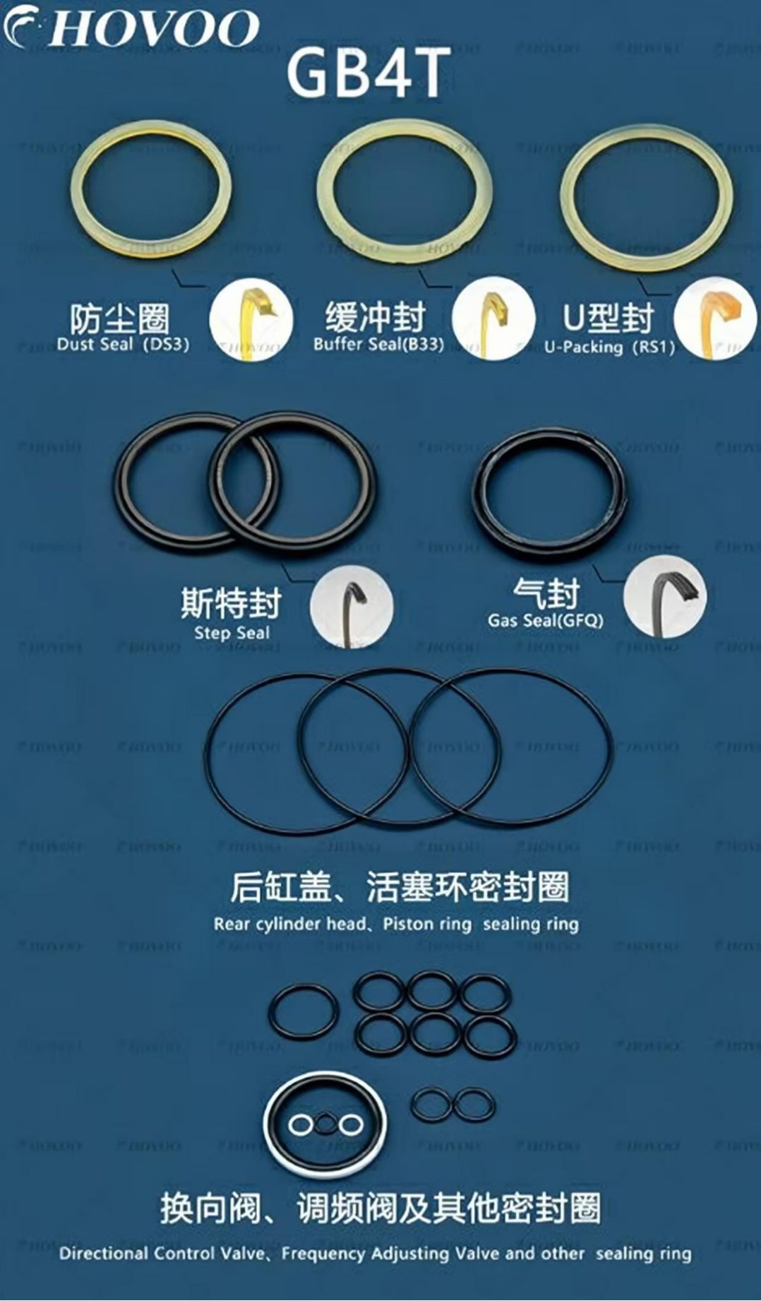 GB4T Uzgriežņu atslēgas hermetizācijas komplekta komponenti