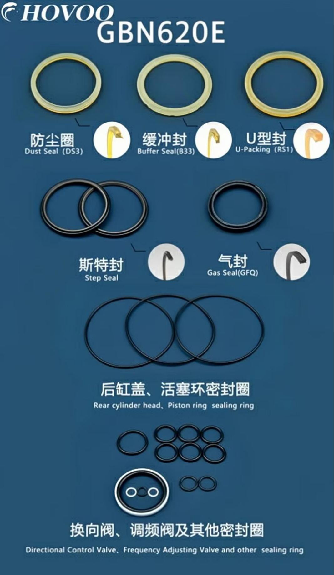 GBN620E Uzgriežņu atslēgas hermetizācijas komplekta komponenti