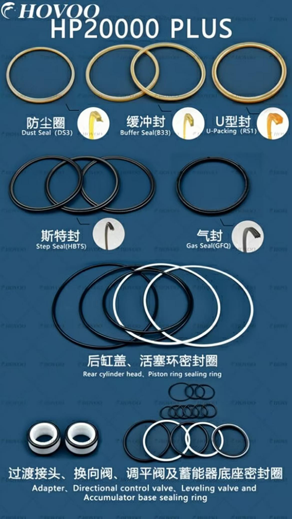 HP25000 PLUS Uzgriežņu atslēgas hermetizācijas komplekta komponenti