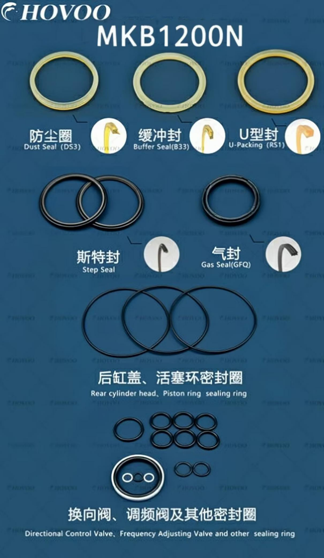 MKB1200N Uzgriežņu atslēgas hermetizācijas komplekta komponenti