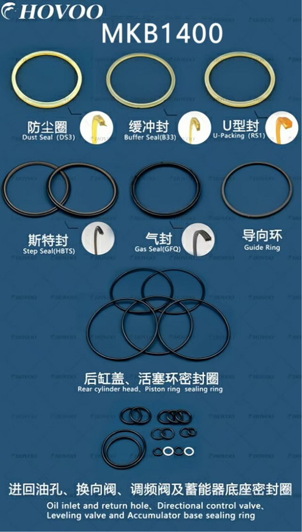 MKB1400 Uzgriežņu atslēgas hermetizācijas komplekta komponenti