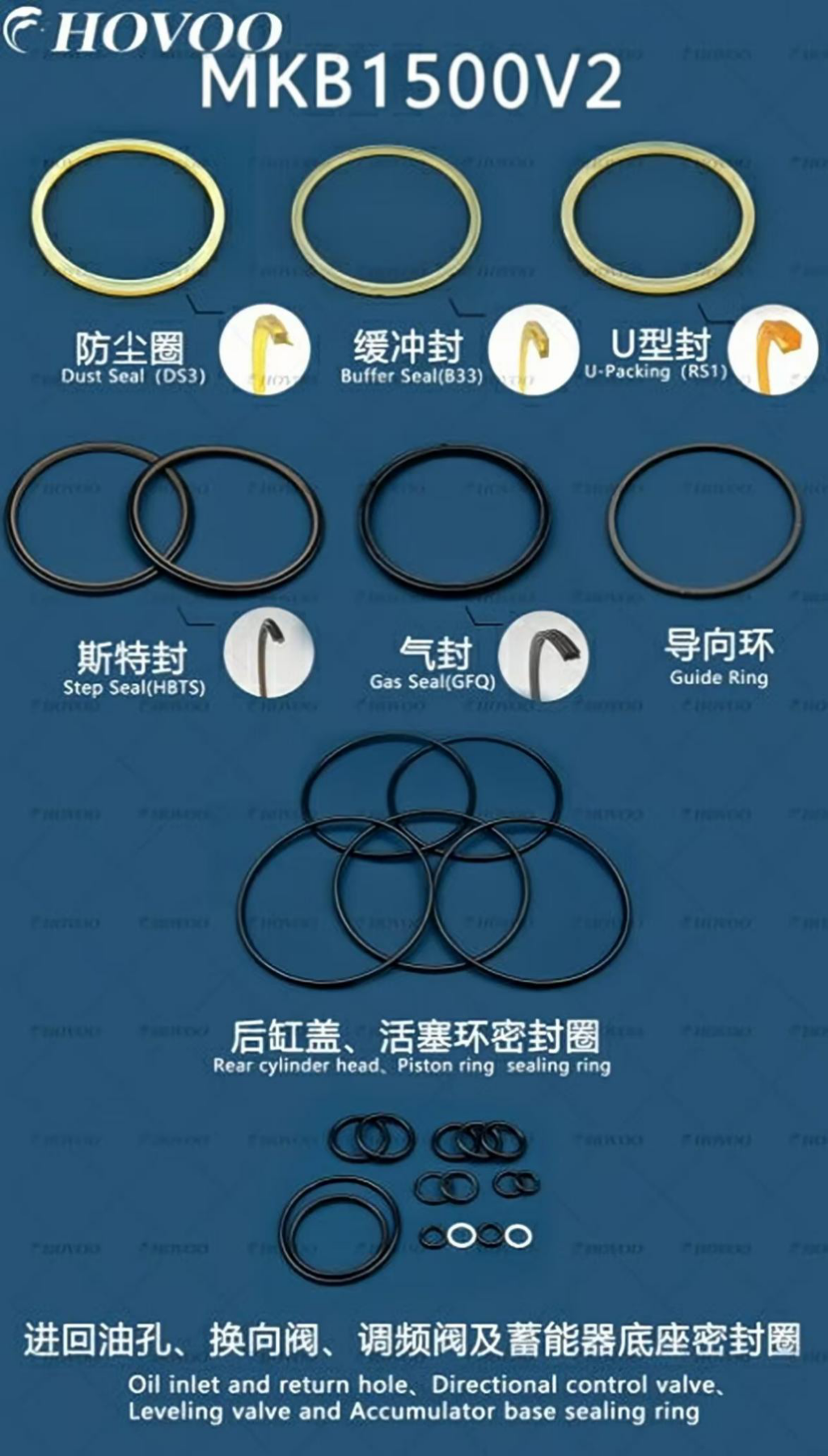 MKB1500V2 Uzgriežņu atslēgas hermetizācijas komplekta komponenti