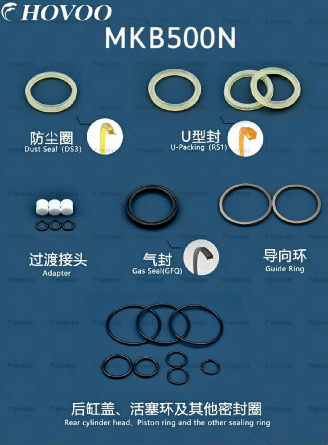MKB500N Uzgriežņu atslēgas hermetizācijas komplekta komponenti