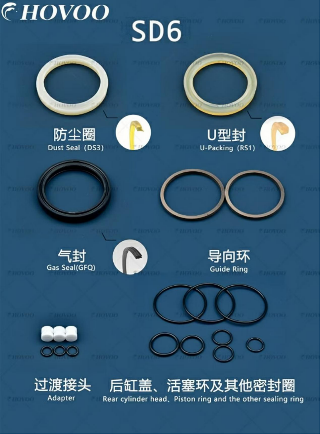 SD6 Uzgriežņu atslēgas hermetizācijas komplekta komponenti