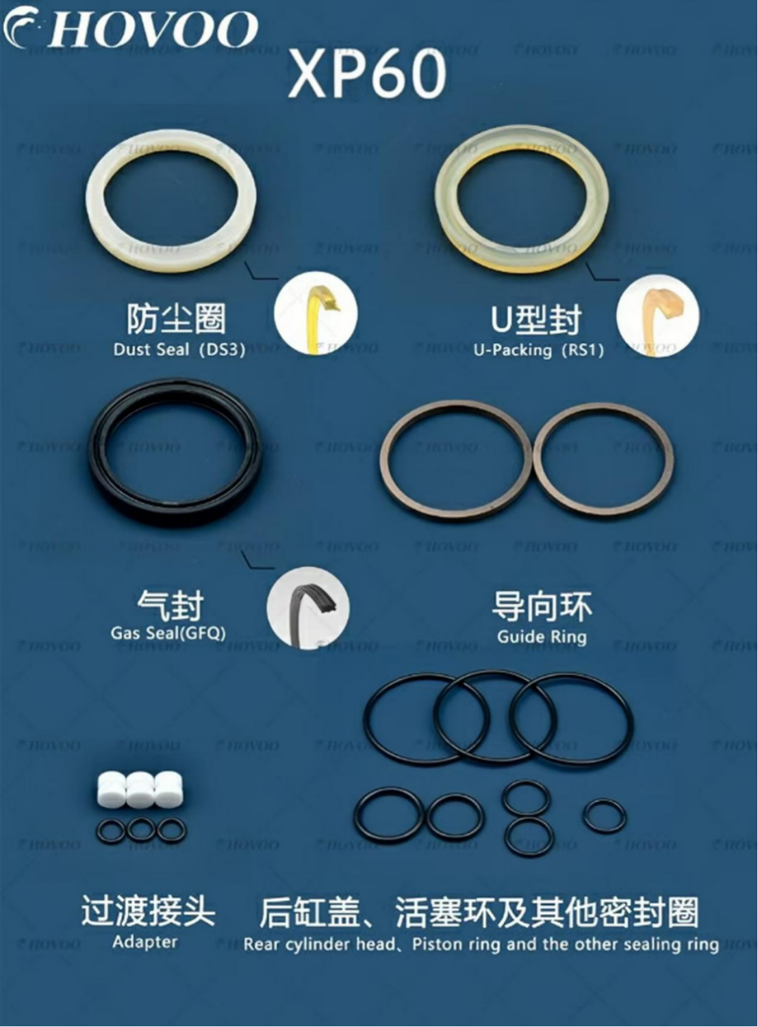 XP60 Uzgriežņu atslēgas hermetizācijas komplekta komponenti